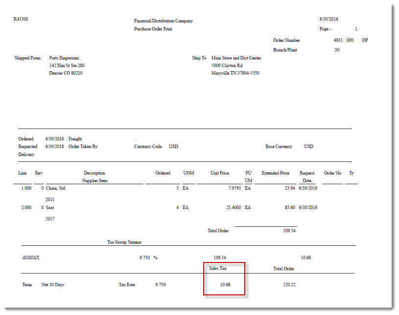 Now, print the purchase order which will include estimated tax calculated by Avalara AvaTax.
