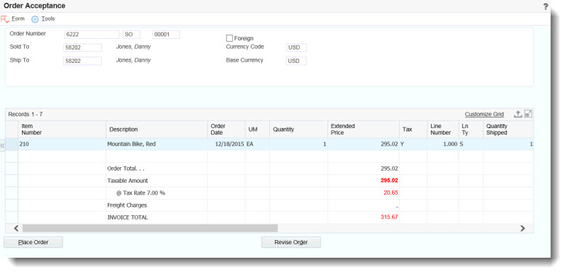 Go to Sales Order Entry application and place an order for the customer. Move order line next status to fall between status limits for address validation discussed further below.
