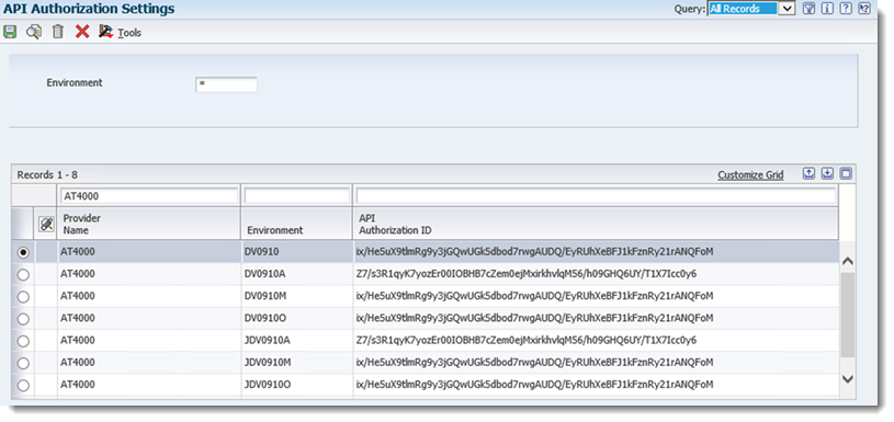 Within Company Settings application (PQ67ATSY) take the form exit to API Auth and verify that API Authorization Settings have been configured based on provided installation guide recommendations. Provider Name (must be “AT4000”), Environment (JDEdwards environment), API Authorization ID (API Access Token generated in the Tax Processing Console).
