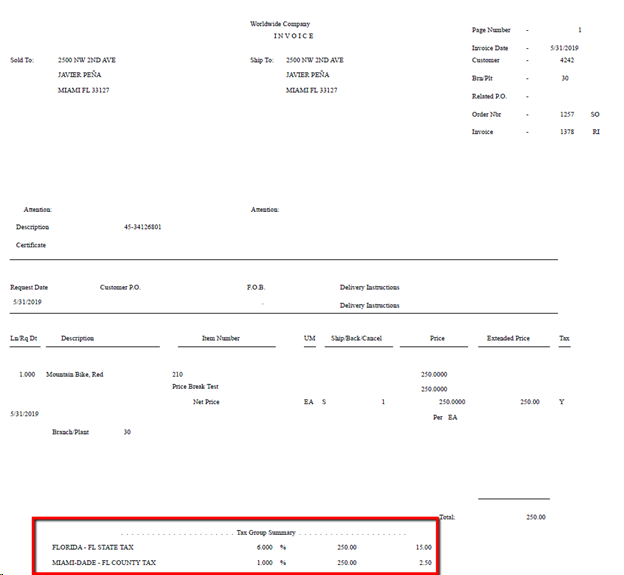 With this configuration you can now see the Tax Group Summary section. This section shows the tax authorities and how the tax is distributed in them.